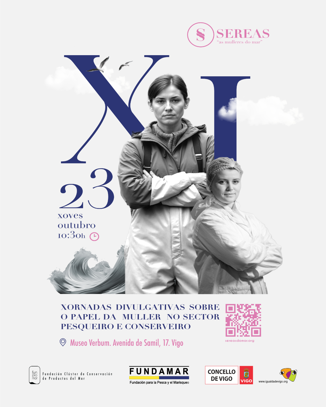 La inauguración correrá a cargo de Roberto Alonso (FUNPROMAR), Javier Touza (FUNDAMAR) y Carmela Silva (Concello de Vigo), quienes destacarán la importancia de seguir tejiendo redes de colaboración e igualdad en un sector esencial para Galicia.